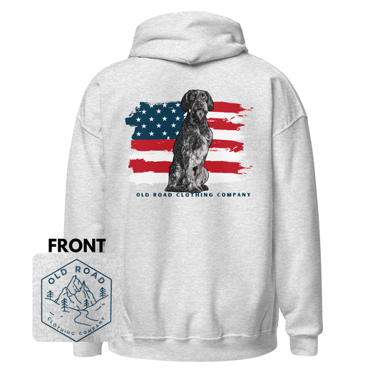 German Wiredhair Pointer Hoodie | American Flag Hoodie | GWP Hoodie | Hunting Dog Hoodie | Bird Hunting Hoodie | Upland Hunting | Waterfowl Hunting