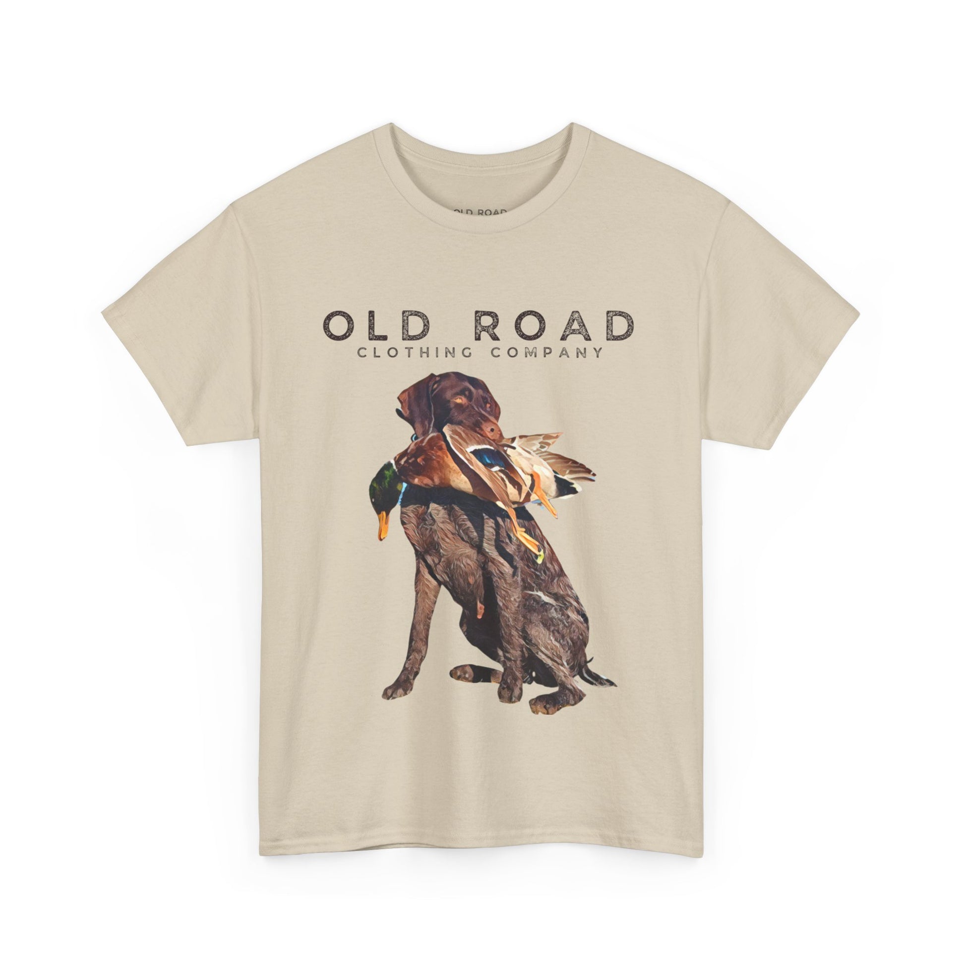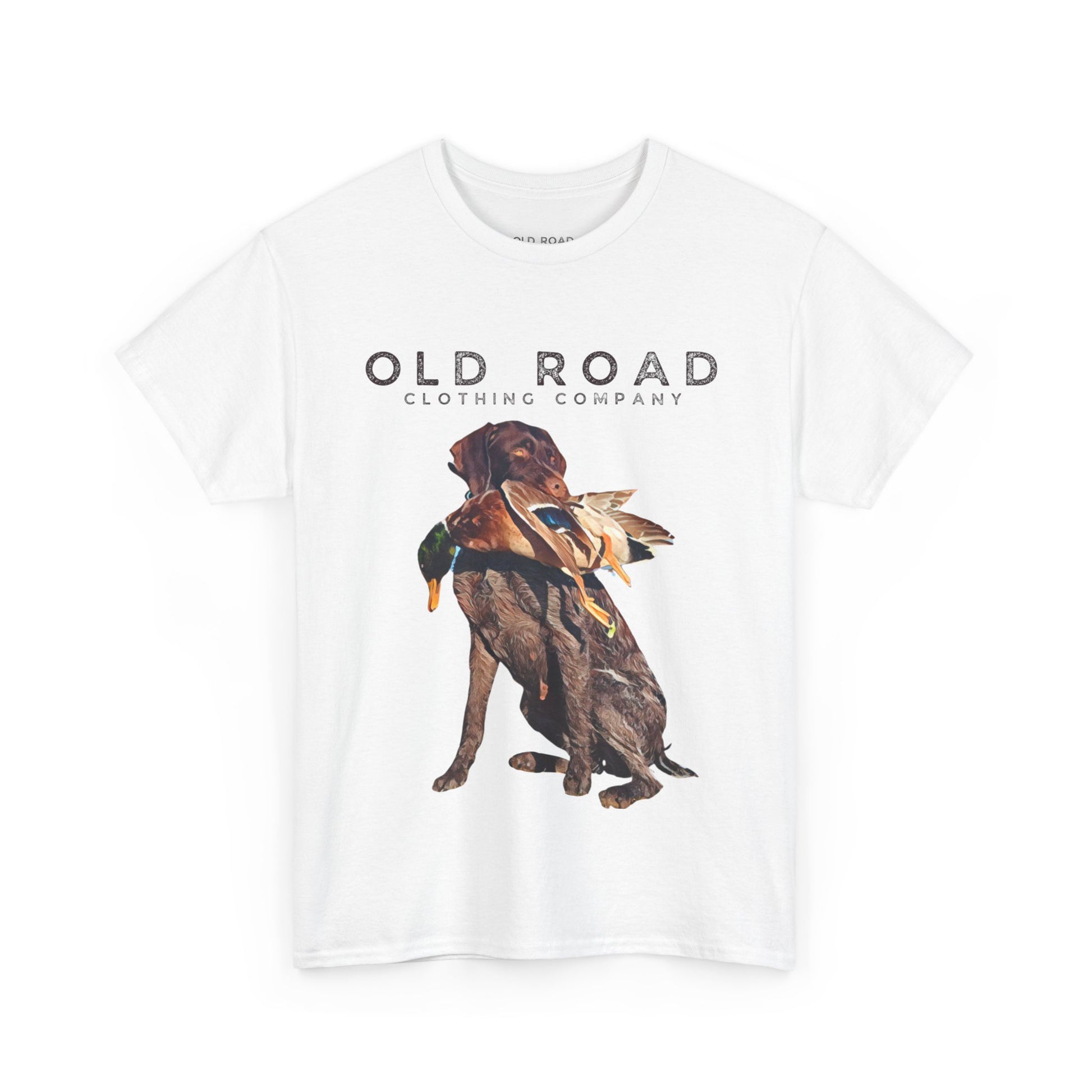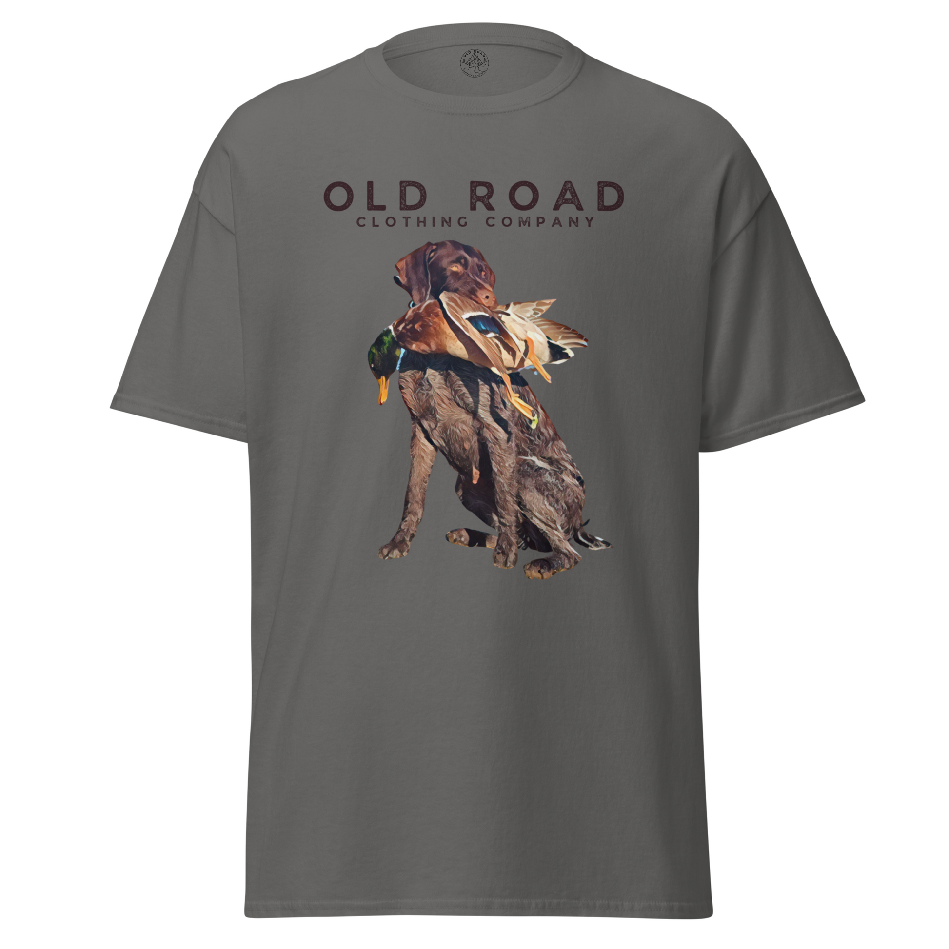 ***UNISEX SIZING | DESIGN ON FRONT ONLY*** This shirt has one of our most popular designs on the front of the shirt instead of the normal logo on the front and dog on the back. This is a German Wirehaired Pointer holding a duck in his mouth. The out logo is in the label of the shirt. This is a prefect choice for a Fathers Day gift for a wireharied pointer owner or a bird/duck hunter.
