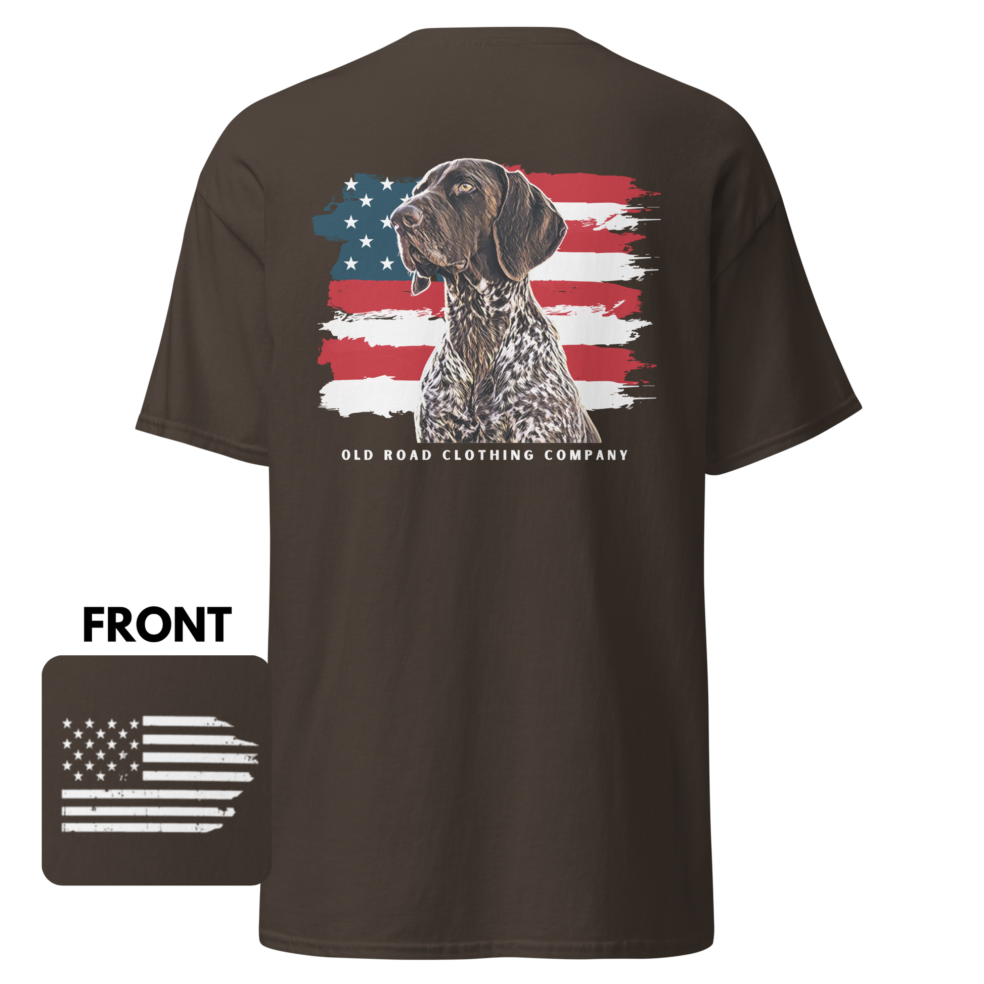 GSP T Shirt | German Shorthaired Pointer T Shirt | American Flag T Shirt | Bird Hunting T Shirt | Pheasant Hunting T Shirt | Grouse Hunting T Shirt