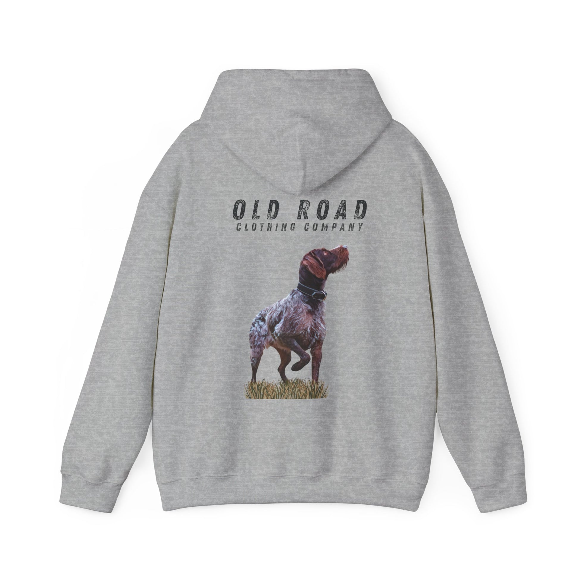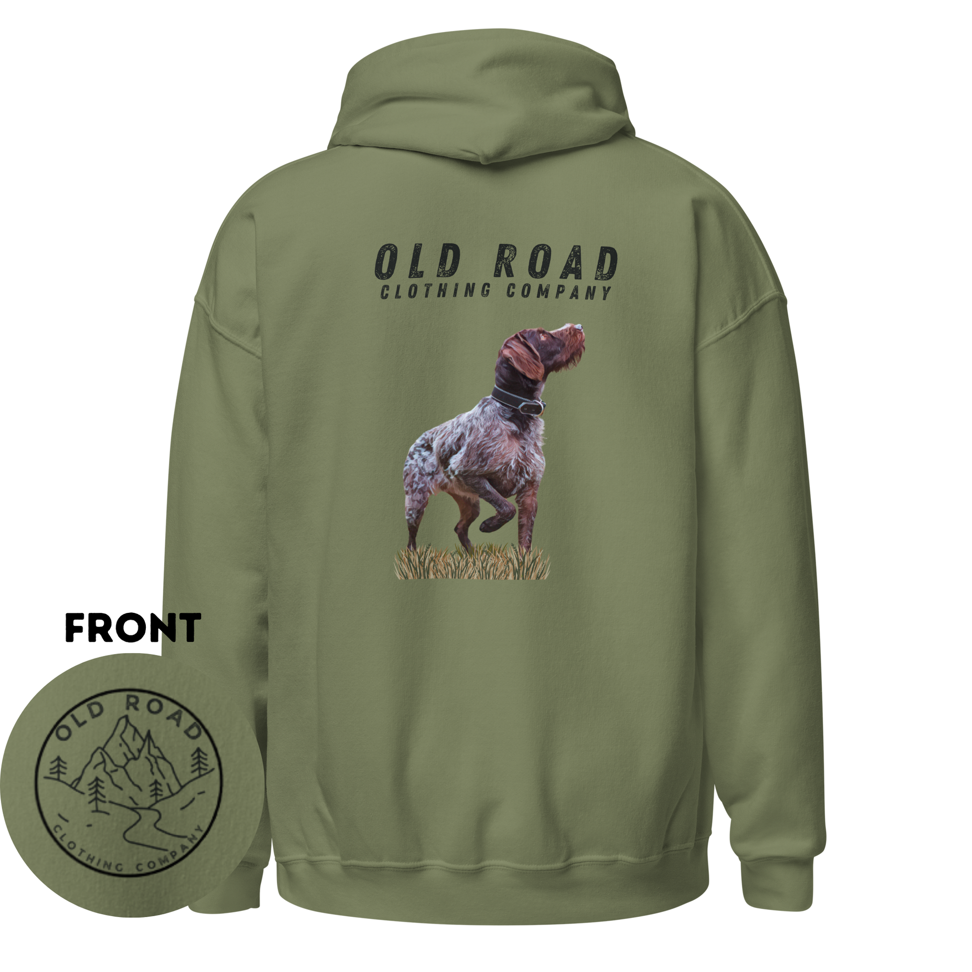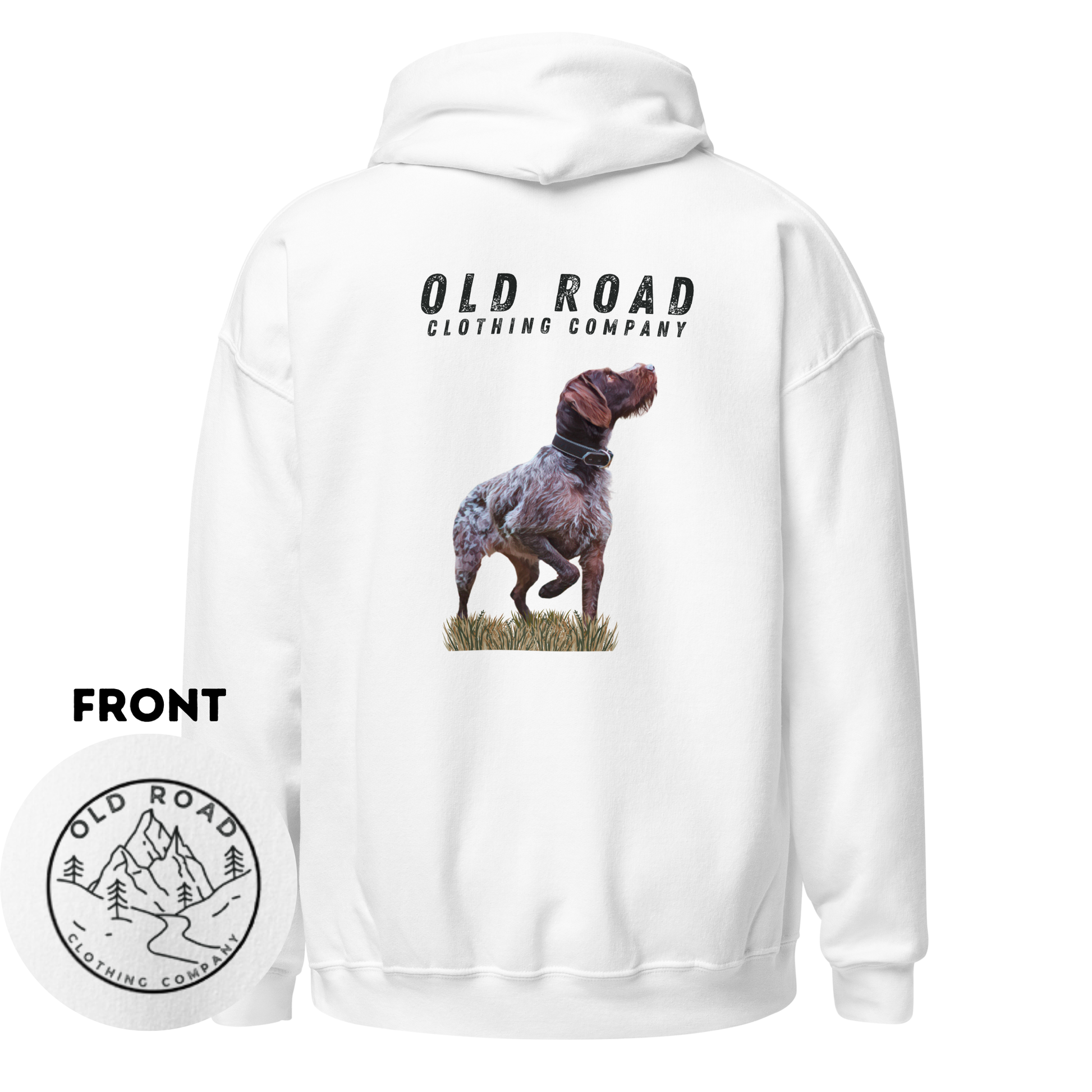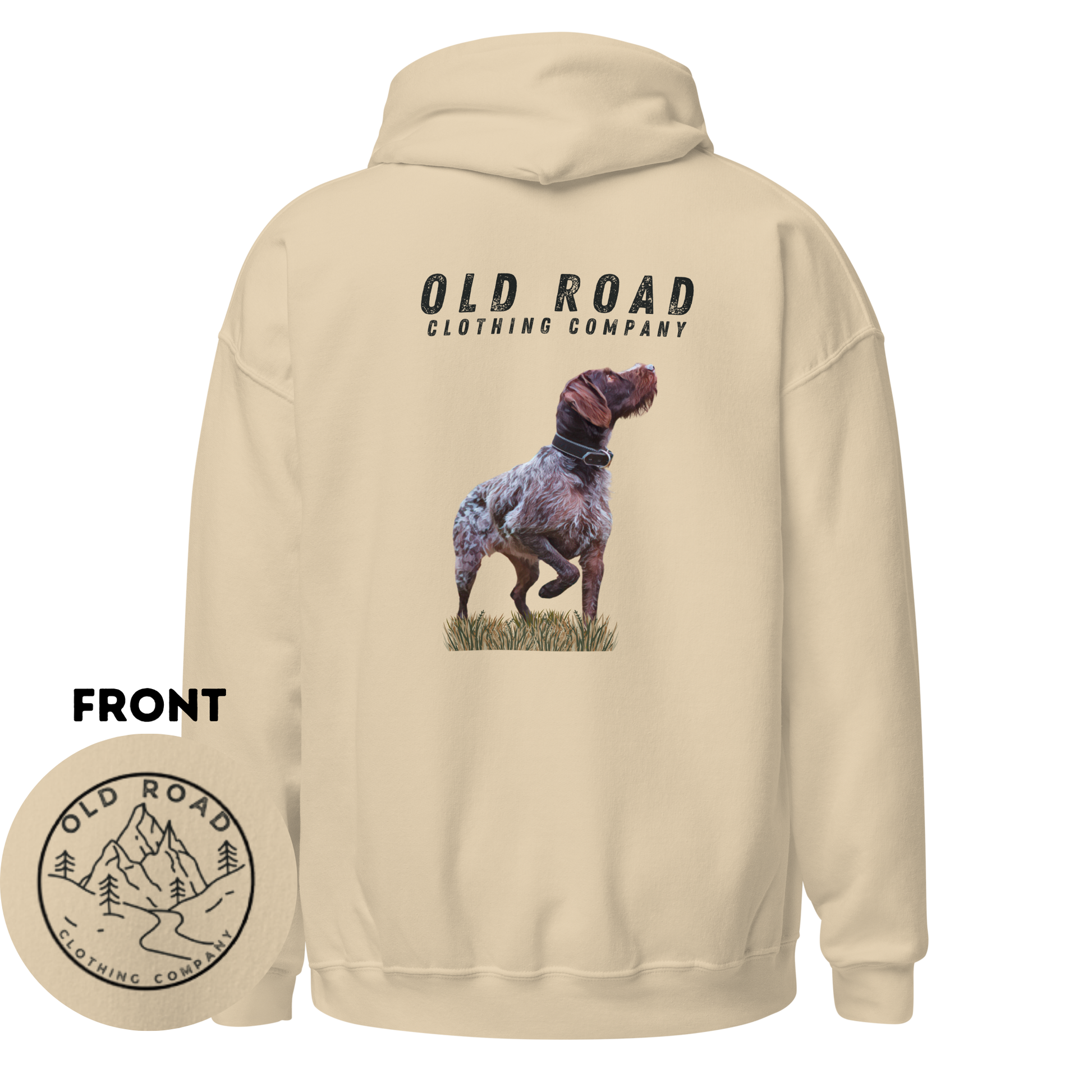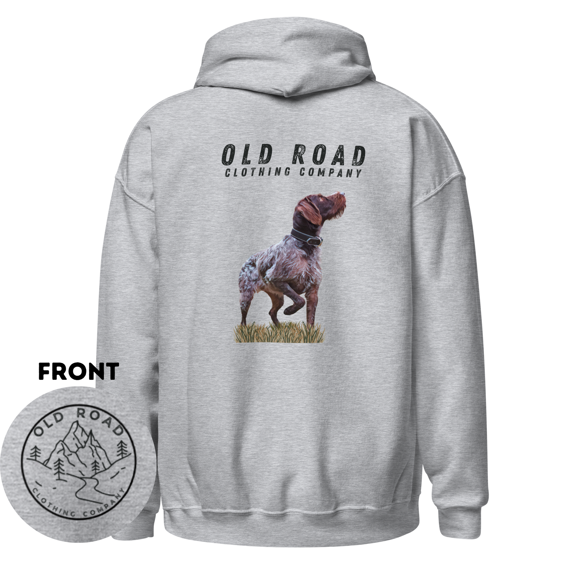 This Hoodie is unisex fit and is made small please review size chart, consider sizing up. This hoodie has a German Wirehaired Pointer pointing on the front and our Old Road Clothing Company logo on the front. **Unisex Fit- Please review size chart before purchasing as we do not accept returns. If there is an issue with our order please reach out to us.