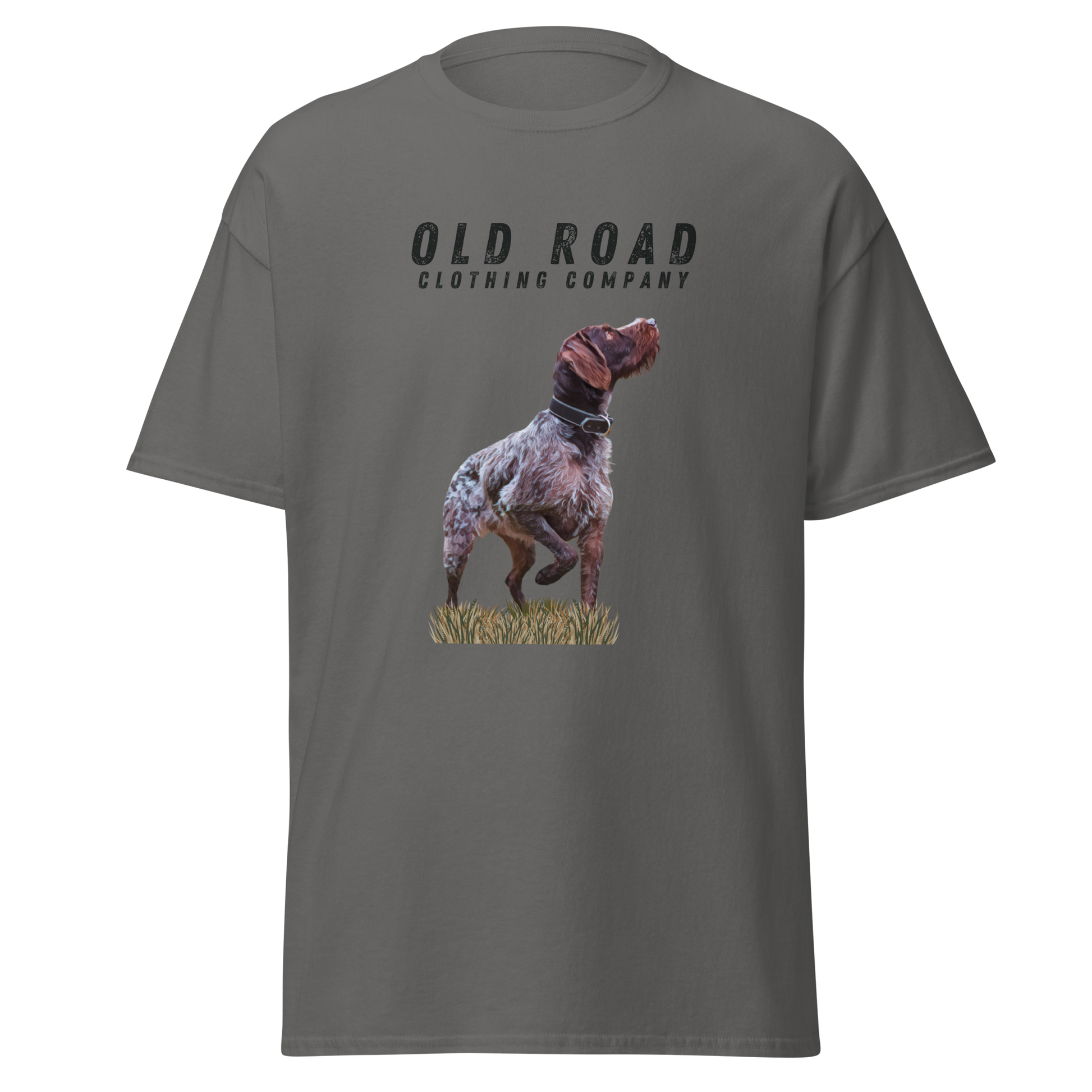 This shirt is unisex fit, please review size chart, consider sizing up. **FRONT ONLY** This shirt has a German Wirehaired Pointer pointing on the front and our Old Road Clothing Company logo on the front **Unisex Fit- Please review size chart before purchasing as we do not accept returns. If there is an issue with our order please reach out to us.